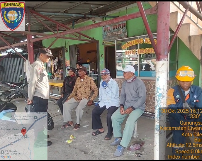 Cilegon - Personil Bhabinkamtibmas Polsek Ciwandan Polres Cilegon Polda Banten Menyampaikan Pesan Kamtibmas dan mengajak masyarakat terus aktif dalam kepedulian terhadap Pemeliharaan keamanan lingkungan di daerah Binaanya, Kamis (30/10/2025).