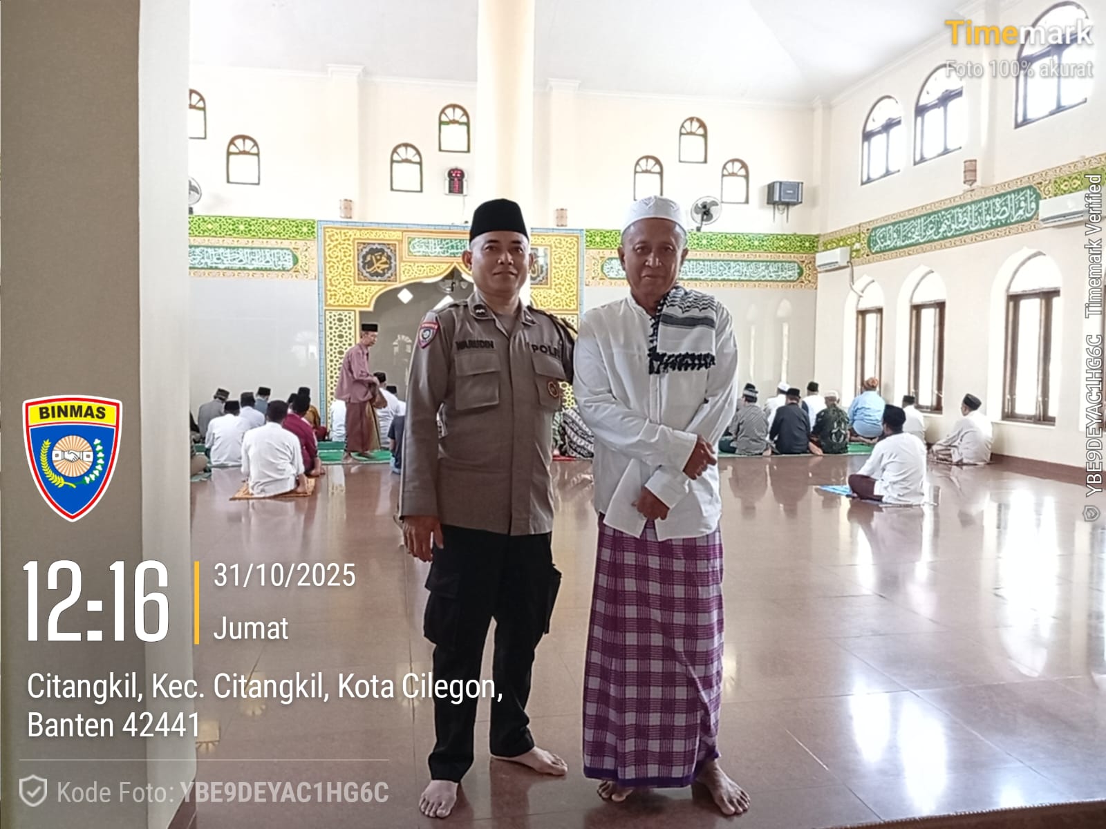 Cilegon - Dalam Rangka Memakmurkan Masjid Dan Sambang,Bhabinkamtibmas Polsek Ciwandan Polres Cilegon Polda Banten Sholat Berjama’ah dan Bersilaturahmi kepada para tokoh Agama sebagai upaya meningkatkan Ukhuwah Islamiyah dalam menjalin silaturahmi dan membangun komunikasi yang baik, Jum’at (31/10/2025).
