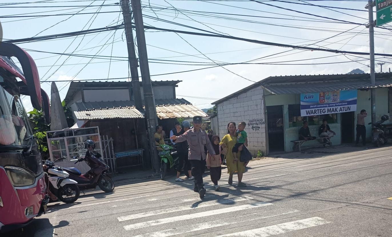 Personel Polsek Anyar Dalam Pengaturan Lalu Lintas di Jalur Anyar - Cinangka