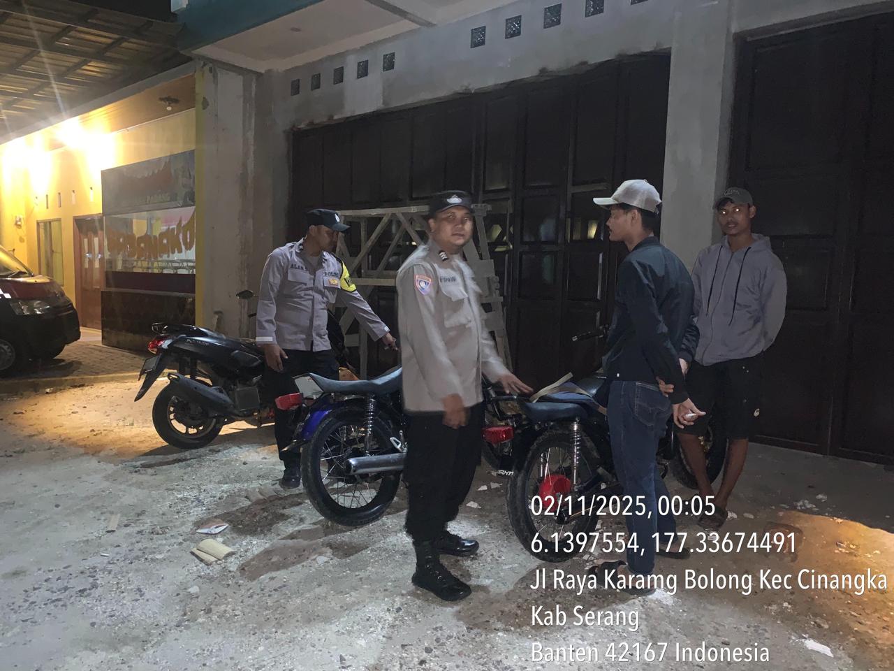 *Cilegon* – Dalam Rangka Pencegahan Kejahatan Jalanan dan Memelihara situasi keamanan dan menjaga serta memberikan rasa aman dan nyaman di masyarakat,Salah satu upaya untuk mewujudkan hal tersebut sebagaimana yang dilakukan oleh Personil Polsek Cinangka Polres Cilegon Polda Banten melaksanakan giat patroli blue light malam hari hingga menjelang pagi, Minggu (02/11/2025).