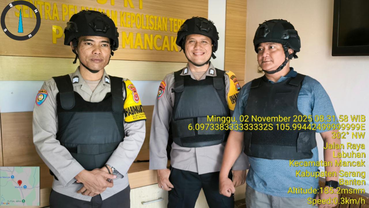 “Anggota piket jaga Polsek Mancak AIPDA HERMAN, AIPDA PESTA, BRIPKA DARSIWAN, BRIPKA ARIE, BRIGADIR ASEP WINDU, BRIGADIR AGAM WICAKSONO