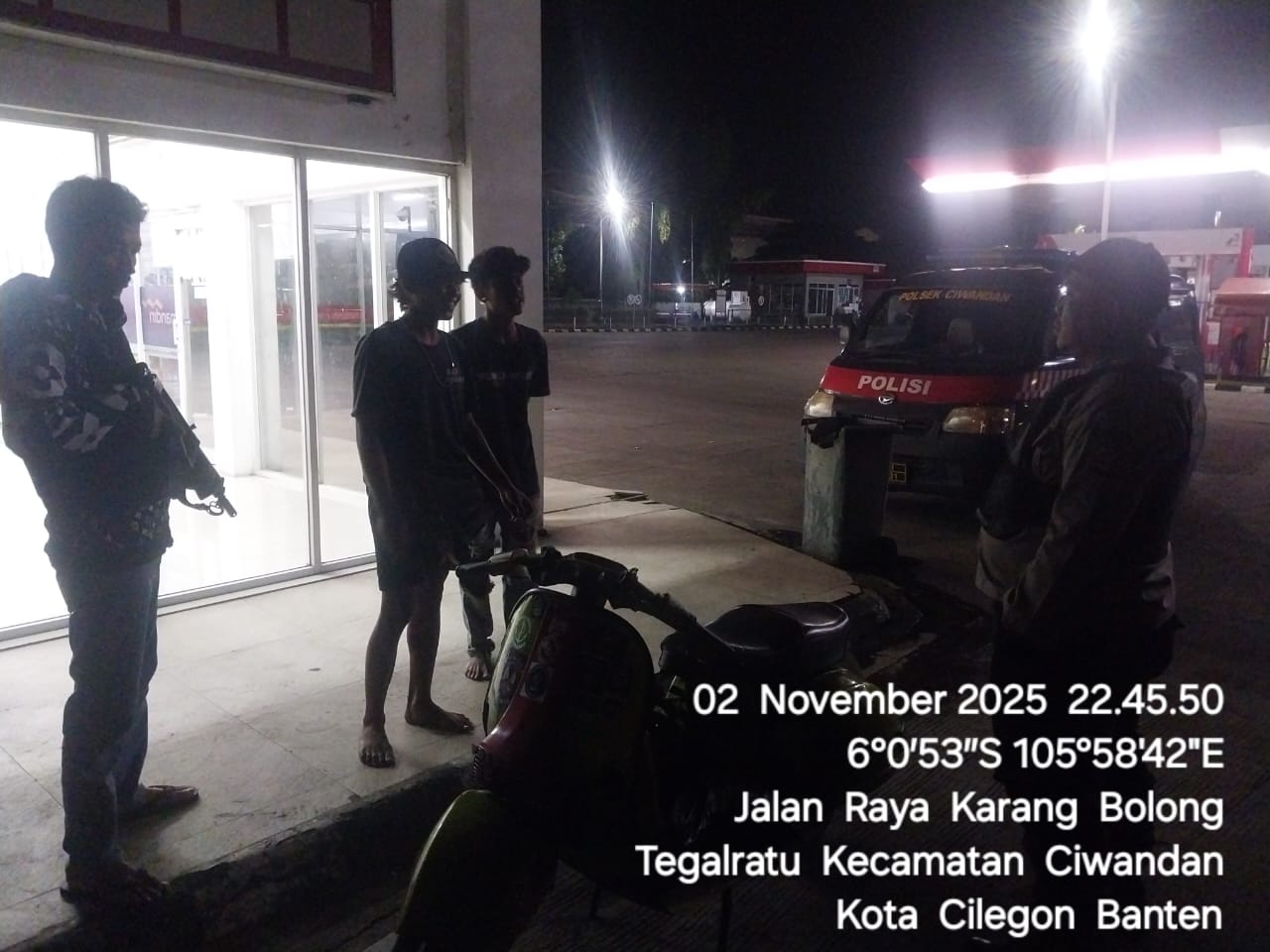 Cilegon - Personil Polsek Ciwandan Polres Cilegon Polda Banten melakukan patroli malam yang bertujuan untuk mengantisipasi adanya aktivitas balap liar dan tawuran kelompok geng motor di daerah hukum Polsek Ciwandan Polres Cilegon Polda Banten, Senin (03/11/2025).