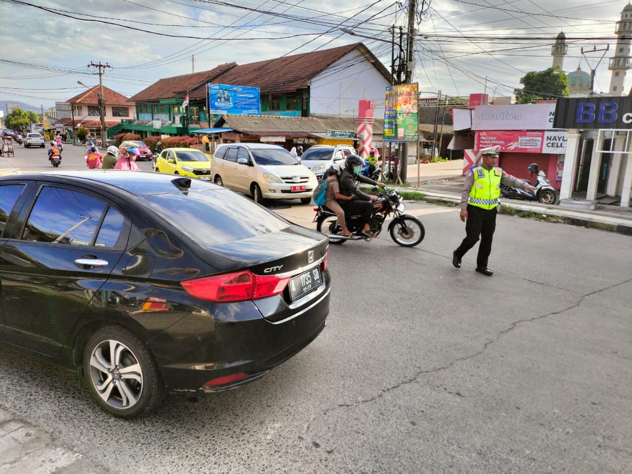 Polsek Cilegon pengaturan arus lalin lancarkan arus kendaraan.