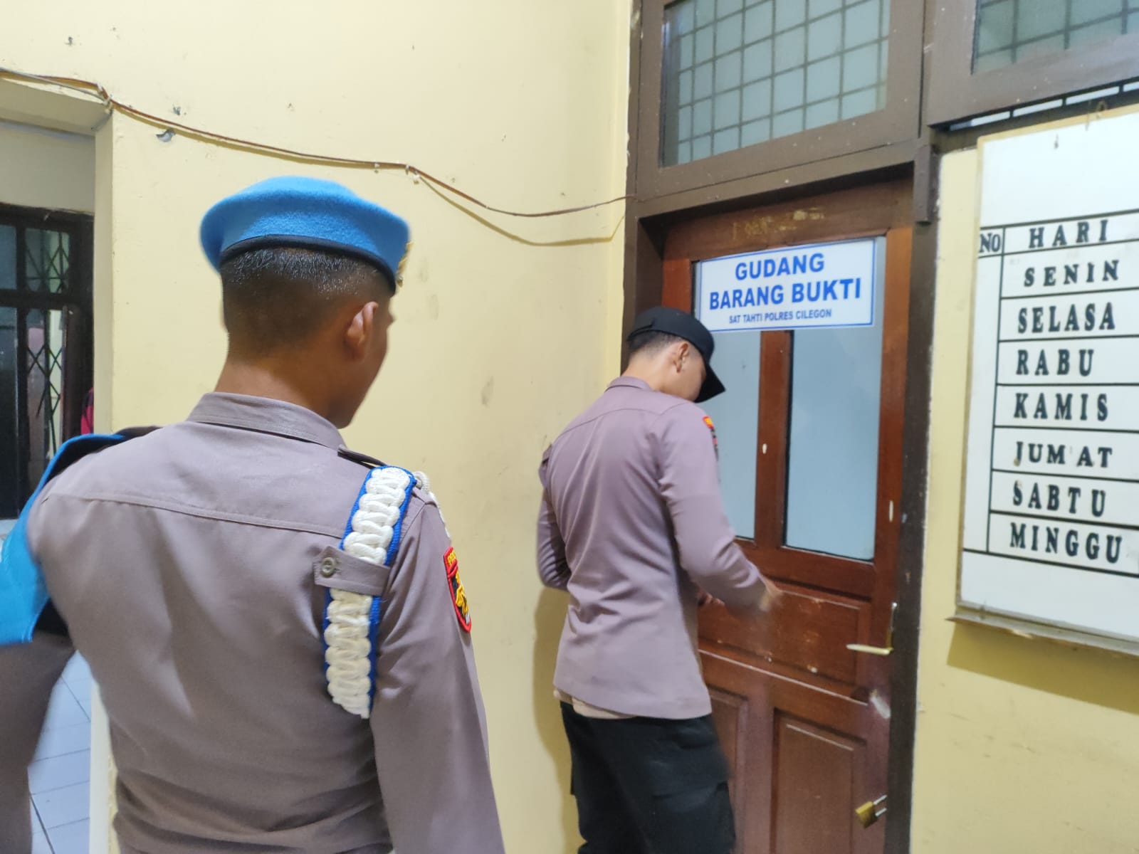 Cilegon, Polres Cilegon Polda Banten. Di gudang barang bukti Polres Cilegon. Anggota SatTahti polres cilegon mengecek barang bukti. (05/11/2025)