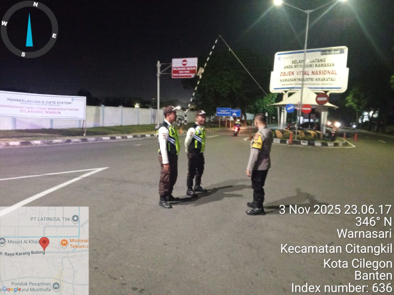 Cilegon - Personil Polsek Ciwandan Polres Cilegon Polda Banten Selalu Melaksanaan Kegiatan KRYD (Kegiatan Rutin Yang Ditingkatkan) Patroli Rutin malam hari di daerah hukum Polsek Ciwandan Guna Persempit Ruang Pelaku Tindak Kejahatan, Selasa (04/11/2025).