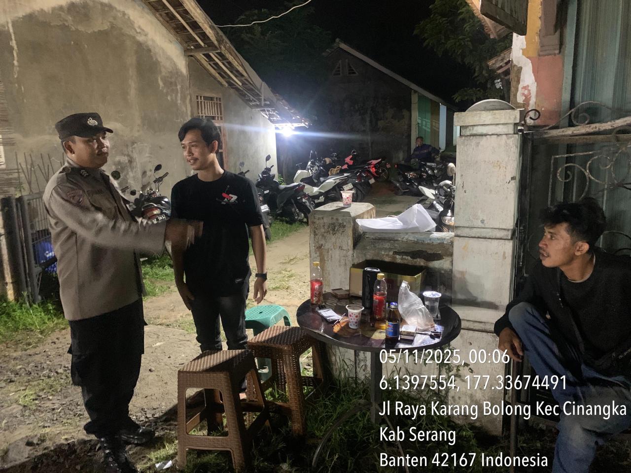 *Cilegon* – Dalam Rangka Pencegahan Kejahatan Jalanan dan Memelihara situasi keamanan dan menjaga serta memberikan rasa aman dan nyaman di masyarakat,Salah satu upaya untuk mewujudkan hal tersebut sebagaimana yang dilakukan oleh Personil Polsek Cinangka Polres Cilegon Polda Banten melaksanakan giat patroli blue light malam hari hingga menjelang pagi, Rabu (05/11/2025).
