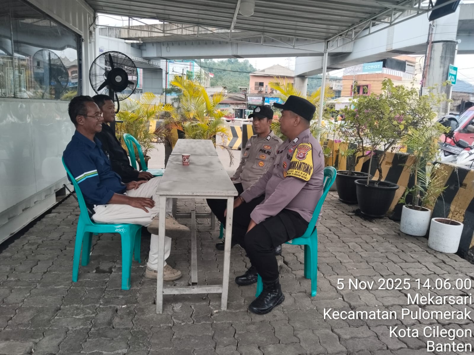 Cilegon - Personel Polsek Kskp Merak Polres Cilegon Polda Banten melaksanakan sambang dan patroli kawasan pelabuhan merak dalam rangka menjaga Harkamtibmas di Kawasan Pelabuhan Merak, Rabu (05/11/2025).