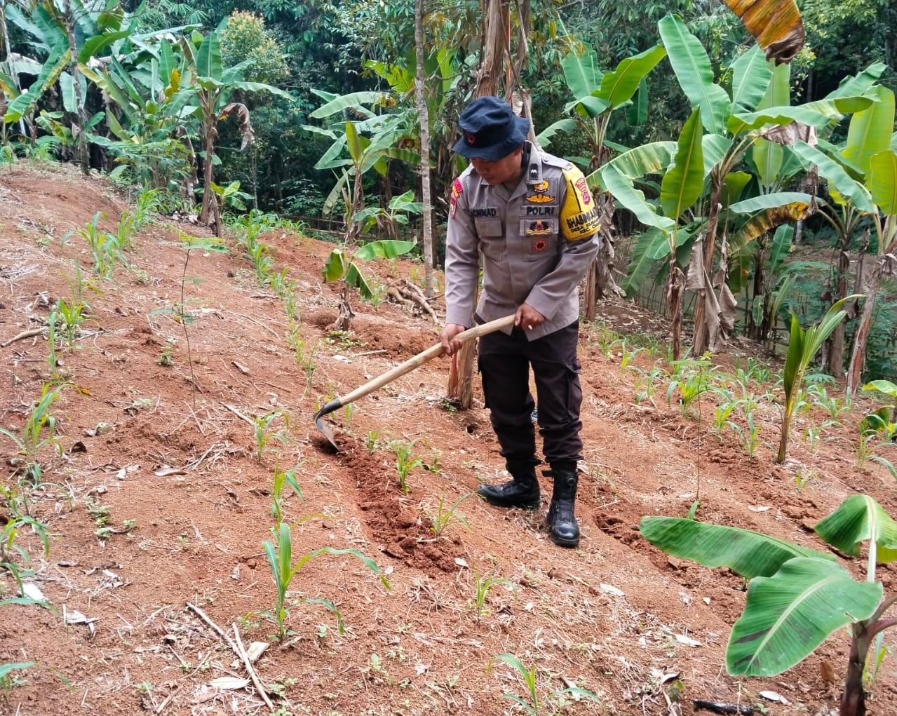 Dalam kesempatan tersebut bahwa Bhabinkamtibmas Polsek Cinangka bersama Kelompok Tani Kec. Cinangka Kab Serang Monitoring dan Pedampingan kegiatan Poktan di wilayahnya lahan yang sedang ditanami Tanaman Jagung dan Palawija.