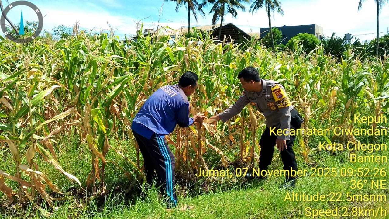 Cilegon - Dalam rangka memberikan dukungan kepada Pemerintah terkait Ketahanan pangan, Bhabinkamtibmas Ciwandan Polres Cilegon Polda Banten melaksanakan Implementasikan Program Asta Cita Presiden dengan fokus pada sektor Pertanian tanaman Jagung dilingkungan Binaan, Jum’at (07/11/2025).