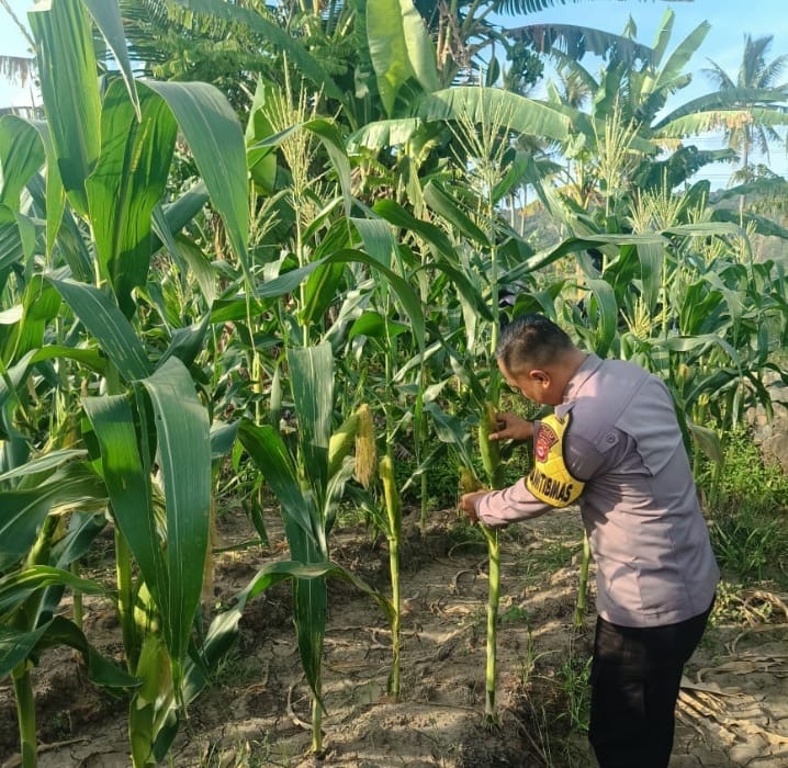 Bhabinkamtibmas Pabean Dampingi Petani Jagung di Blok Tuk Kelurahan Pabean Cek Tanaman Jagung