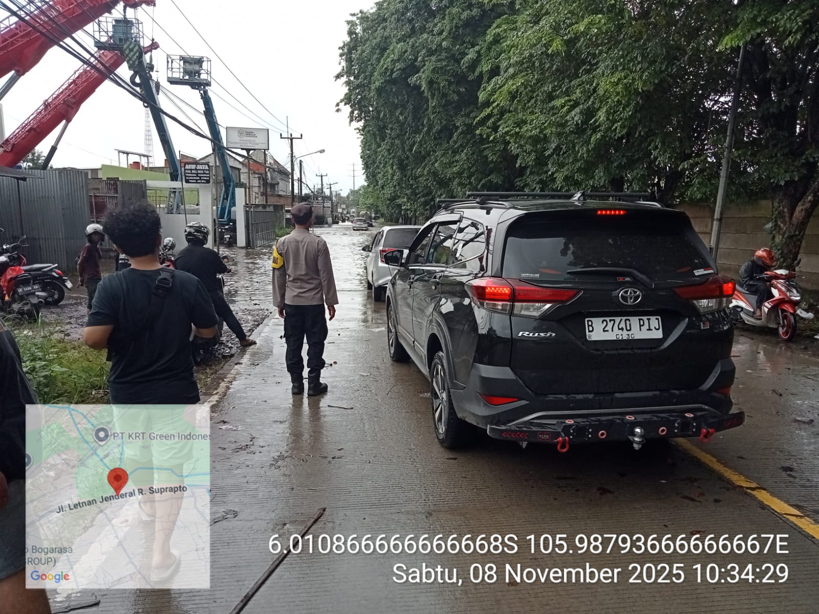 Cilegon - Hujan deras yang mengguyur wilayah Ciwandan menyebabkan genangan air setinggi 40 cm di Jl. Raya Anyer Km 06, Kubang Sari, Ciwandan. Genangan air ini menyebabkan gangguan arus lalu lintas di sepanjang Jl. Raya Anyer-Ciwandan, Sabtu (08/11/2025).