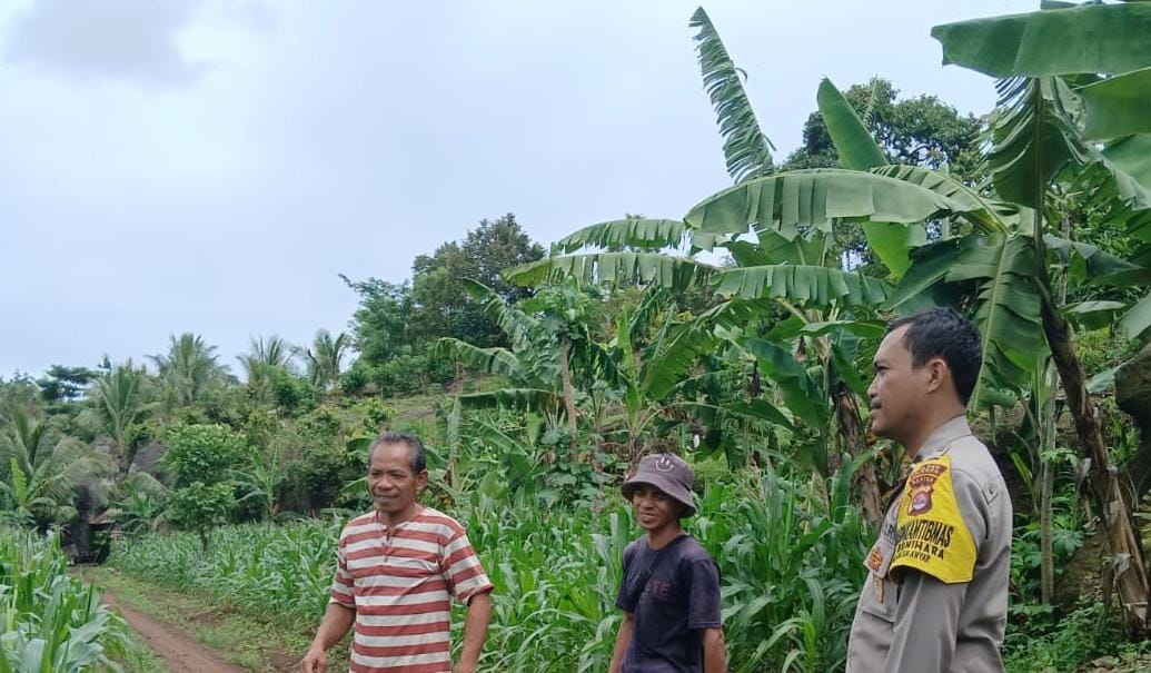 Bhabinkamtibmas Polsek Anyar dan Poktan Cek Tanaman Jagung di Wilayah