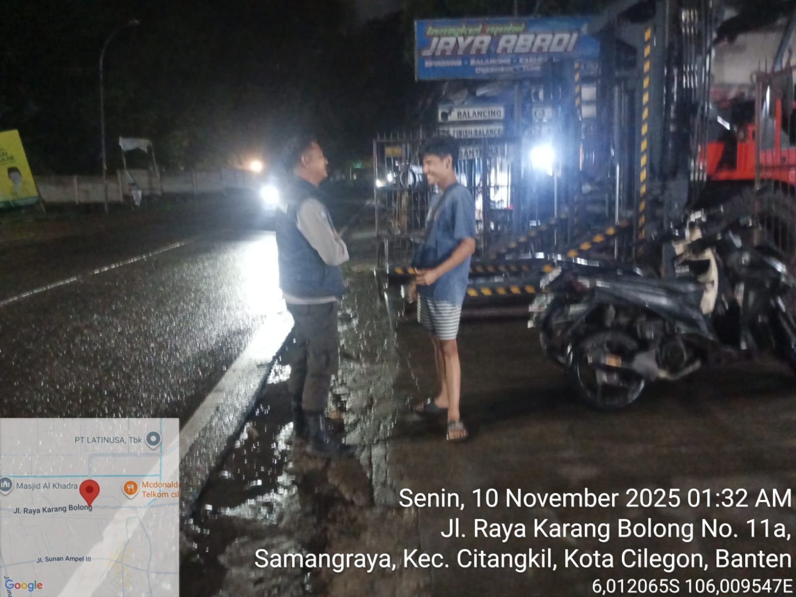 Cilegon - Upaya mengantisipasi aksi kejahatan pada daerah binaan dan memberikan rasa aman dan nyaman kepada warga binaan, Bhabinkamtibmas Polsek Ciwandan Polres Cilegon Polda Banten sambangi warga pada malam hari, Swnin (10/11/2025).