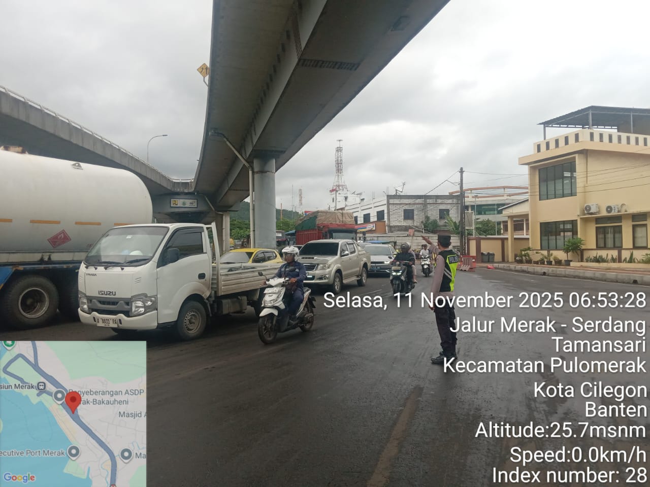Cilegon - Dalam rangka peningkatan pelayanan prima kepada masyarakat, Kskp Merak Polres Cilegon Polda Banten melaksanakan pengaturan antrian R4 yang akan masuk ke Kapal Ferry di Pelabuhan Merak, Selasa (11/11/2025).