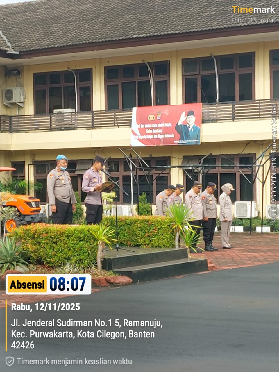 Cilegon, Polres Cilegon ,Polda Banten,  Personil Polres Cilegon Melaksanaan Apel pagi, merupakan kegiatan rutin setiap harinya terkait situasi di wilayah hukum Polres Cilegon Rabu 12 November 2025).