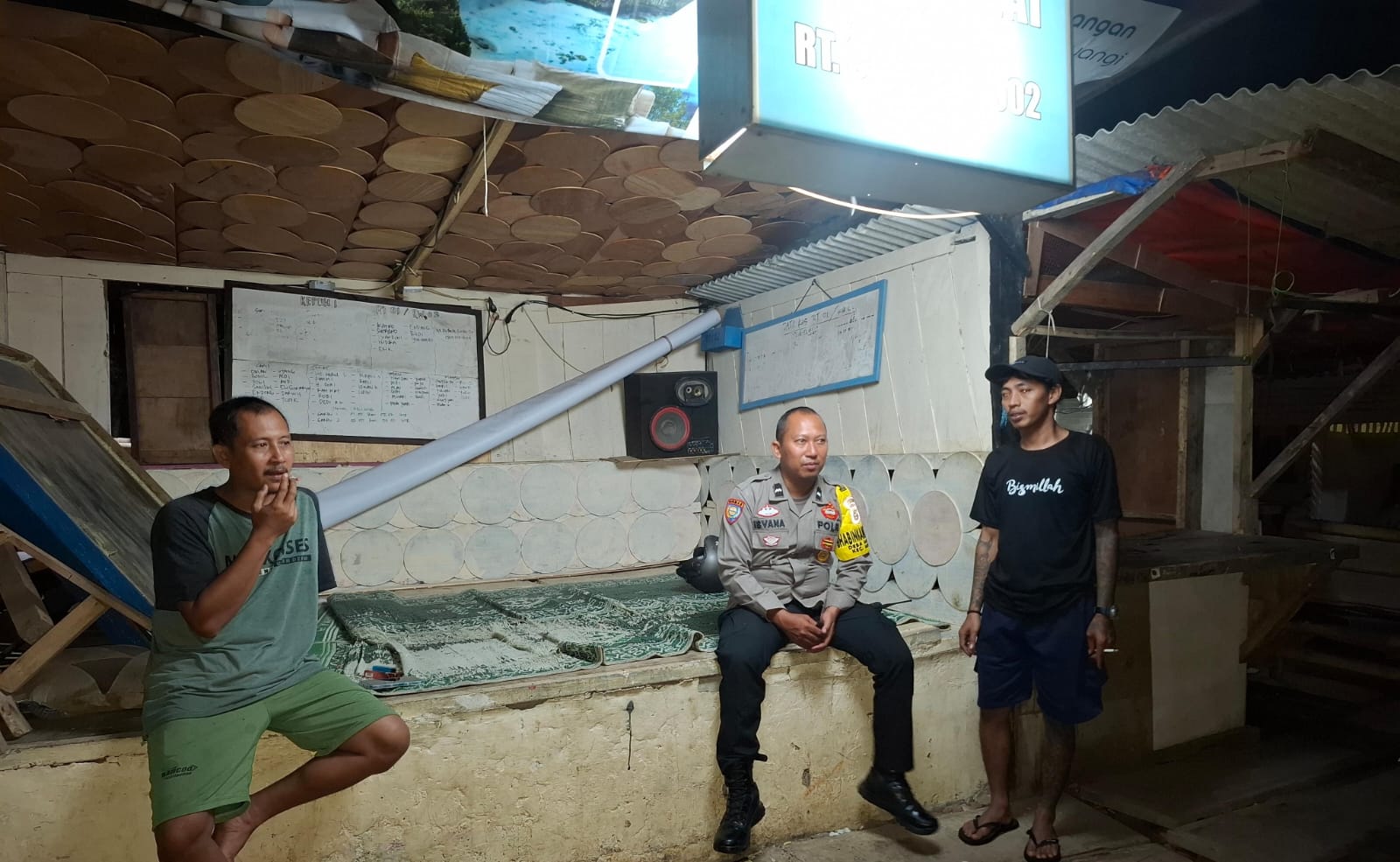 Personel Bhabinkamtibmas Polsek Anyar Polres Cilegon Polda Banten Aipda Isvana melaksanakan sambang Ronda Siskamling Dalam rangka menjaga Harkamtibmas dan Sebagai bentuk mendukung Program Quick Wins Presisi Polri, Rabu (12/10).