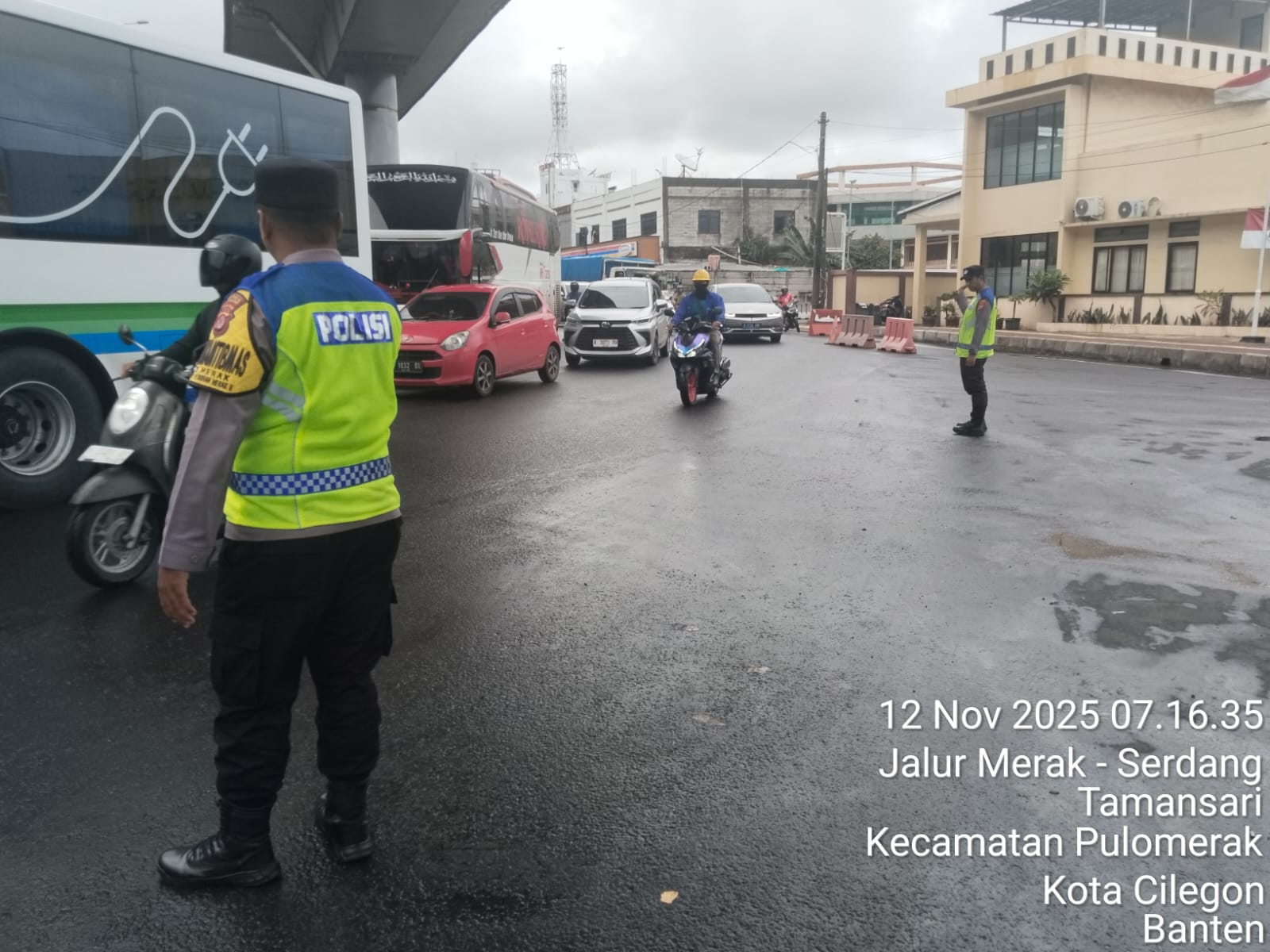 Polsek KSKP Merak Pastikan Kelancaran Arus Kendaraan Menuju Kapal Ferry di Pelabuhan Merak