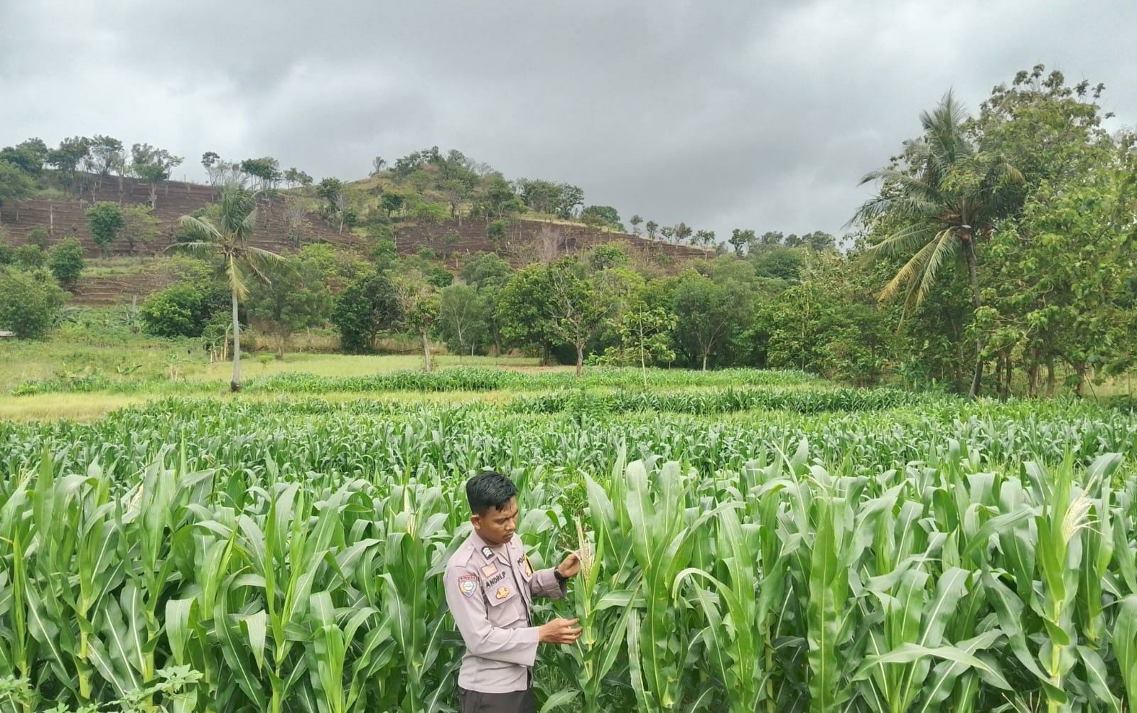Anggota Bhabinkamtibmas Polsek Bojonegara Langsung Cek Tanaman Jagung, Sebagai Wujud Dukung Ketahanan Pangan