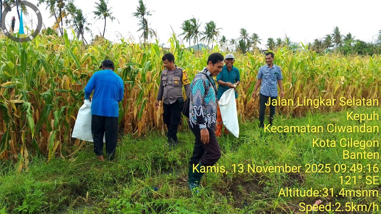Cilegon - Polsek Ciwandan Polres Cilegon Polda Banten mendukung kegiatan panen jagung Hibrida hasil penanaman Poktan Blumbang Tani di Kelurahan Tegal Ratu, Kecamatan Ciwandan, Kota Cilegon, Kamis (13/11/2025)