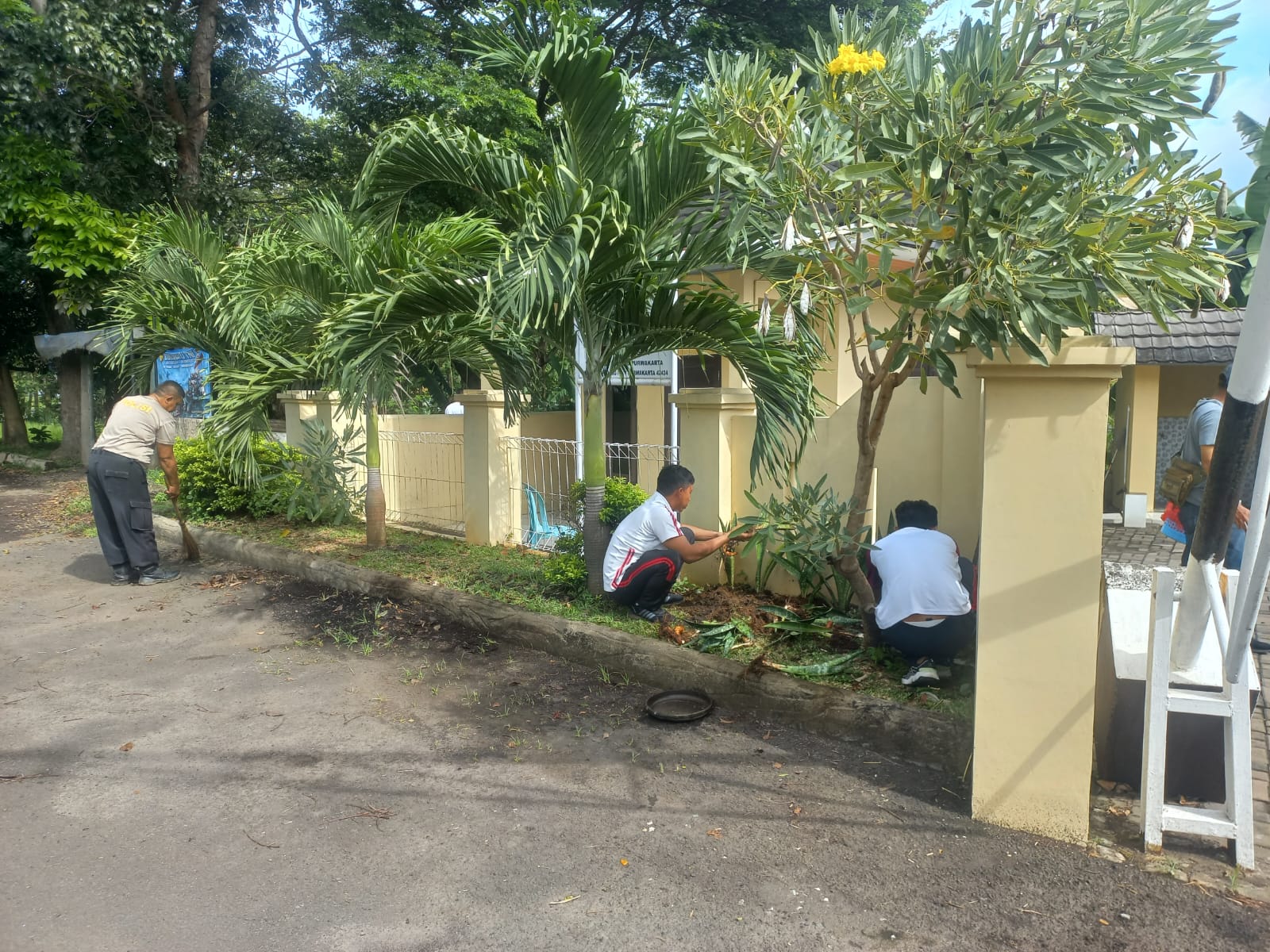 Setelah apel pagi, seluruh personil Polsek Purwakarta langsung melaksanakan korve dengan membersihkan sampah, merapikan taman, serta membersihkan selokan di sekitar Mako Polsek. Semangat gotong royong dan kebersamaan terlihat jelas dalam kegiatan ini.