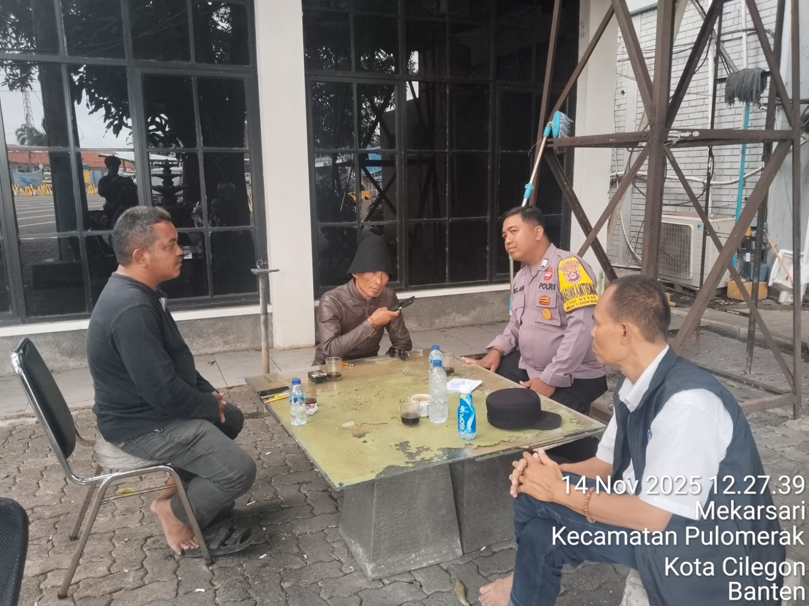 Cilegon - Personel Polsek Kskp Merak Polres Cilegon Polda Banten melaksanakan sambang dan patroli kawasan pelabuhan merak dalam rangka menjaga Harkamtibmas di Kawasan Pelabuhan Merak, Jumat (14/11/2025).