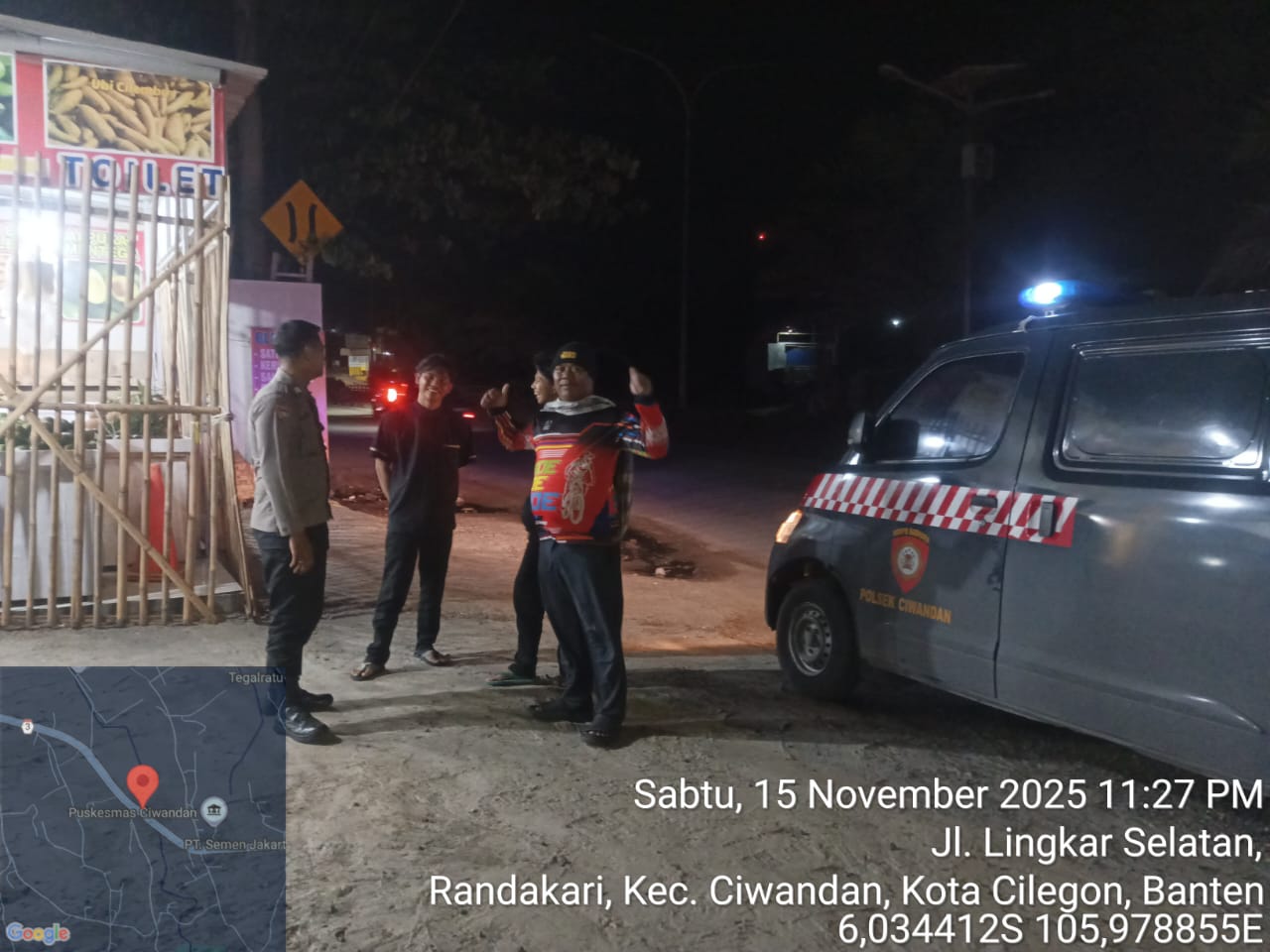 Kapolres Cilegon Polda Banten AKBP Dr. Martua Raja Taripar Laut Silitonga Melalui Kapolsek Ciwandan Polres Cilegon Polda Banten KOMPOL Andi Suherman Mengatakan bahwa setiap malam Personil Polsek Ciwandan Polres Cilegon Polda Banten menggelar patroli dengan menyasar daerah rawan dan Pada Jam Yang Dianggap Rawan, Hal tersebut dilakukan untuk mencegah terjadinya gangguan kamtibmas seperti kejahatan jalanan jambret ataupun curanmor.