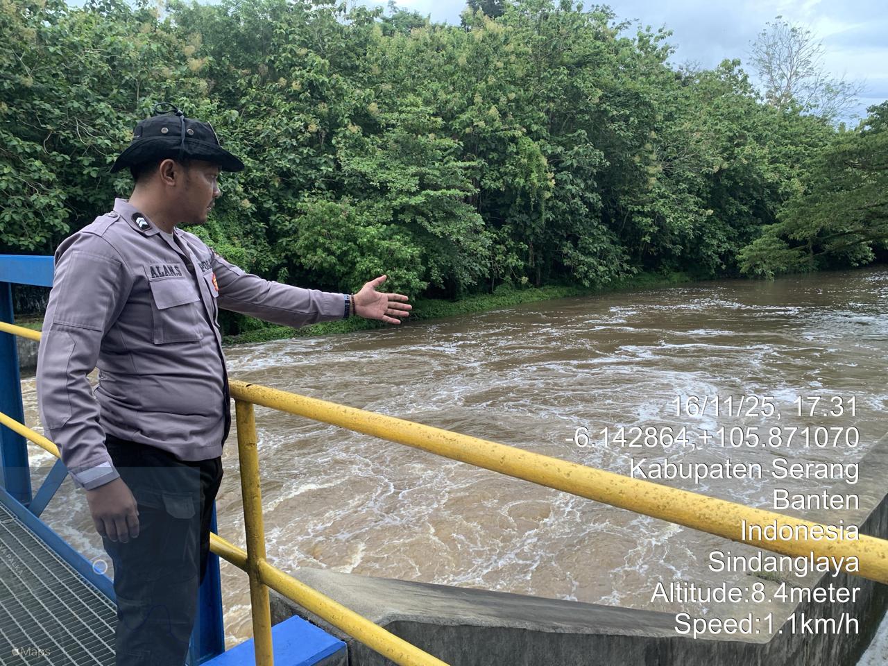 Piket Polsek Cinangka secara rutin melakukan pengecekan kondisi sungai dan berkoordinasi dengan pihak terkait untuk memantau perkembangan debit air. Pemantauan ini juga melibatkan partisipasi aktif dari masyarakat setempat.