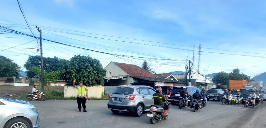 Laksanakan Strong Poin Di Sore Hari, Bripka Bambang dan Bripka Geri Polsek Bojonegara Laksanakan Giat Pengaturan Lalin di Bojonegara