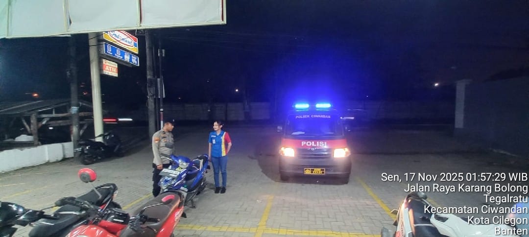 Cilegon - Dalam rangka menekan tindak kriminalitas serta untuk memberikan rasa aman dan nyaman kepada masyarakat terutama pada malam hari,Personil Polsek Ciwandan Polres Cilegon Polda Banten melakukan patroli malam hari di daerah-daerah yang rawan kriminalitas, Senin (17/11/2025).