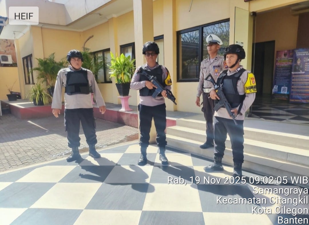 Cilegon - Guna mengantisipasi adanya potensi ancaman dan gangguan terhadap keamanan kantor maupun keselamatan personel piket jaga, Personil Polsek Ciwandan Polres Cilegon Polda Banten selalu tingkatkan kesiapsiagaan dan kewaspadaan dengan rutin menggelar kegiatan Sistem Pengamanan Mako (Sispam Mako), Minggu (16/11/2025).