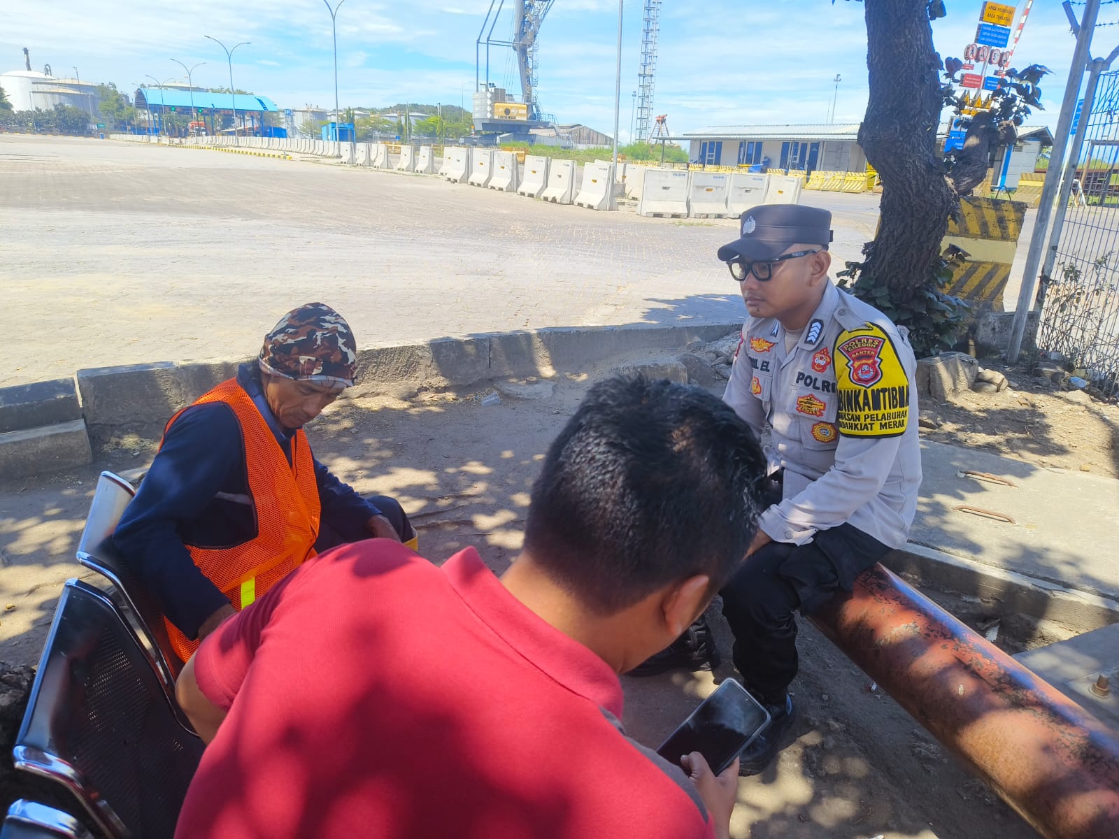 Jalin Silaturahmi, Personil Bhabinkamtibmas Pelabuhan Polsek KP Banten berbincang dengan Buruh Pelabuhan