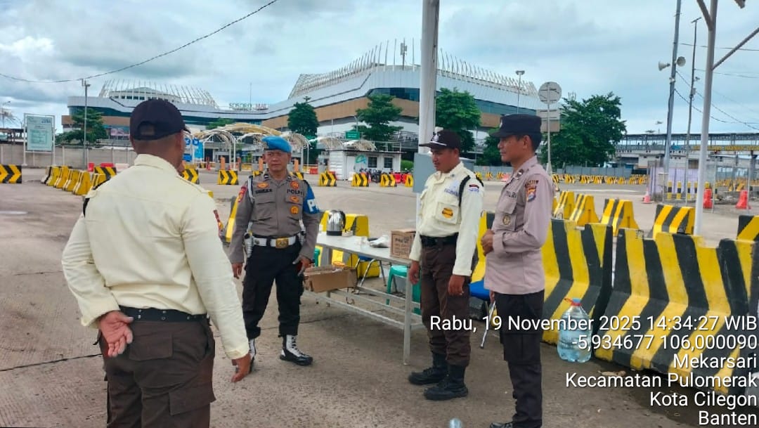 Cilegon - Personel Polsek Kskp Merak Polres Cilegon Polda Banten melaksanakan sambang dan patroli kawasan pelabuhan merak dalam rangka menjaga Harkamtibmas di Kawasan Pelabuhan Merak, Rabu (19/11/2025).