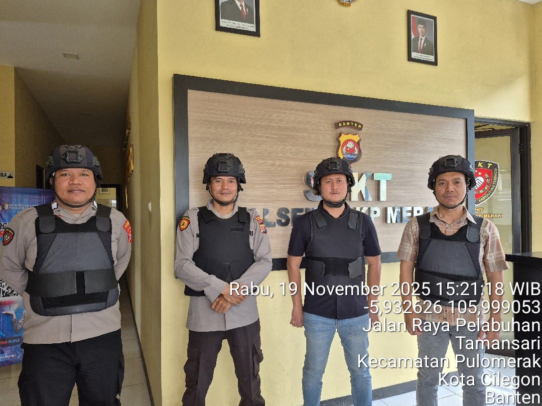 Cilegon - Personel piket jaga Polsek Kskp Merak Polres Cilgon Polda Banten melaksanakan siaga 1 Polsek pelaksanaan Sispam Mako oleh piket siaga dipimpin oleh Kspk Polsek Kskpy Merak Polres Cilegon Polda Banten, Rabu (19/11/2025).