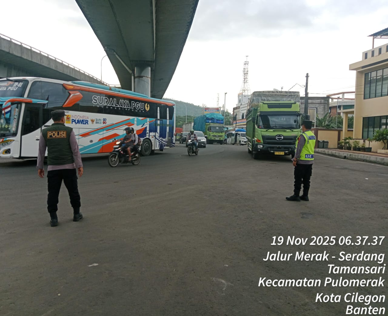 Polsek KSKP Merak Perlancar Arus Kendaraan R4 Menuju Penyeberangan Merak–Bakauheni