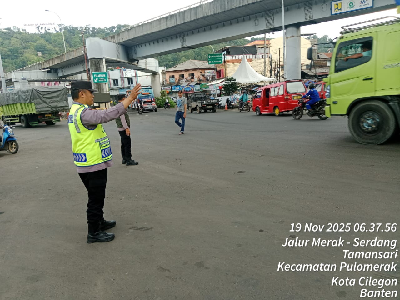 Cilegon - Dalam rangka peningkatan pelayanan prima kepada masyarakat, Kskp Merak Polres Cilegon Polda Banten melaksanakan pengaturan antrian R4 yang akan masuk ke Kapal Ferry di Pelabuhan Merak, Rabu (19/11/2025).