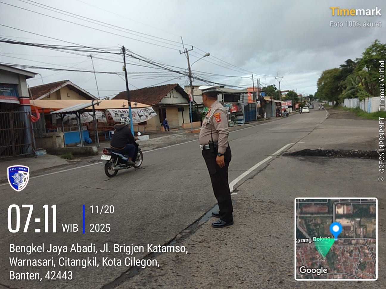 Cilegon - Dalam Mewujudkan Aksi Nyata Pelayanan Kepada Masyarakat,Personil Polsek Ciwandan Polres Cilegon Polda Banten Laksanakan Strong Poin Pengaturan Lalu-lintas, Kamis (20/11/2025).