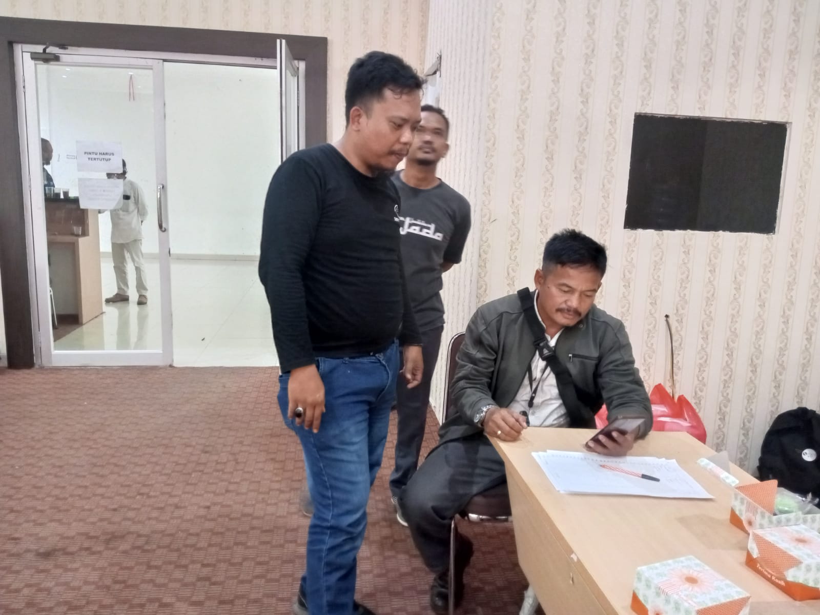 Personil sat intelkam melakukan koordinasi dengan tokoh pemuda kec. Gerogol kota cilegon.