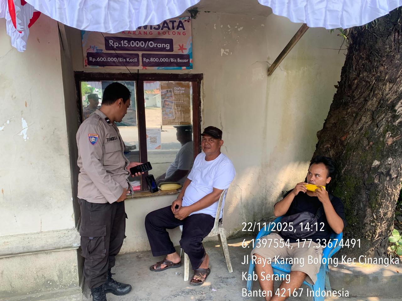_*POLRES CILEGON*_ | Polsek Cinangka Polres Cilegon Polda Banten melaksanakan kegiatan patroli Serta memberikan Himbauan kepada pengunjung pantai yang berwisata dan Sambang kepada petugas penjaga pantai dan juga antisipasi harkamtibmas di Wilayah Hukum Polsek Cinangka Polres Cilegon Polda Banten, Sabtu (22/11/2025).
