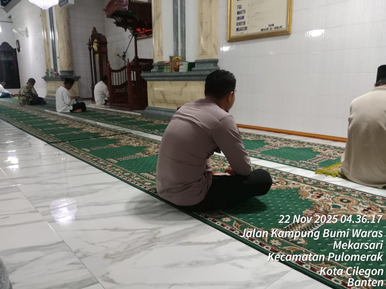 “Dalam kegiatan tersebut, Personil Polsek Kp Polres Cilegon Polda Banten turut berbaur dengan jemaah masjid dalam melaksanakan shalat subuh berjamaah. Setelah itu, dilakukan dialog interaktif antara petugas kepolisian dan masyarakat untuk mendengarkan aspirasi serta memperoleh masukan terkait dengan situasi keamanan dan ketertiban di lingkungan sekitar,” tambah Kapolsek.