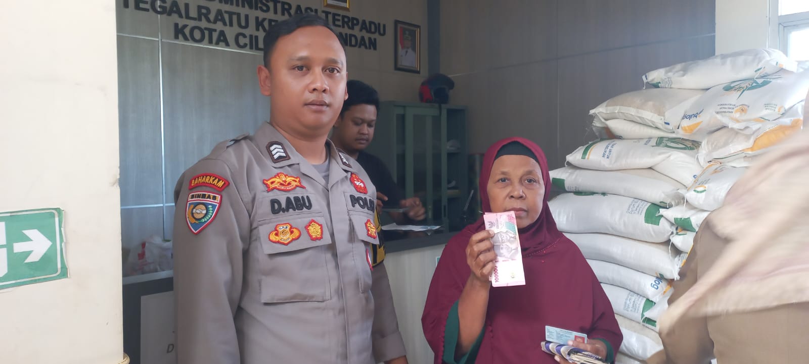Cilegon - Bhabinkamtibmas Kelurahan Tegalratu, BRIGPOL Dede Abu, melaksanakan pengamanan dan monitoring bantuan langsung tunai dari Kementerian Sosial RI di Kantor Kelurahan Tegalratu, Kecamatan Ciwandan, Kota Cilegon, Selasa (25/11/2025).
