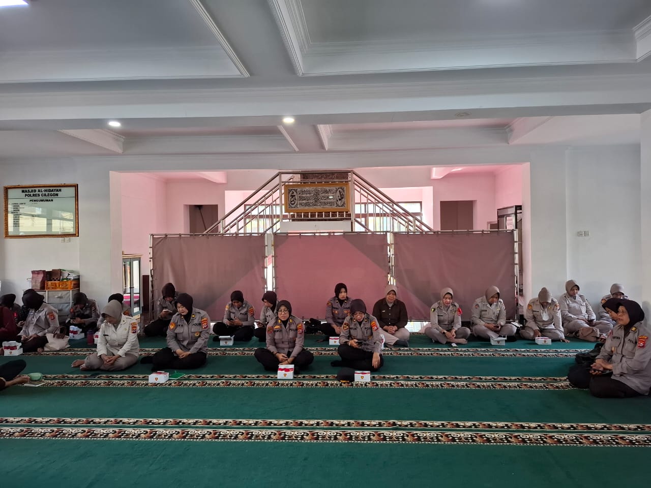 Setelah melaksanakan apel pagi, personil Polres Cilegon yang beragama Islam langsung menuju ke Masjid Al-Hidayah Polres Cilegon untuk melaksanakan pengajian rutin. Pengajian ini diikuti oleh seluruh anggotaPolres Cilegon, baik yang berpangkat Perwira, Bintara, maupun ASN.