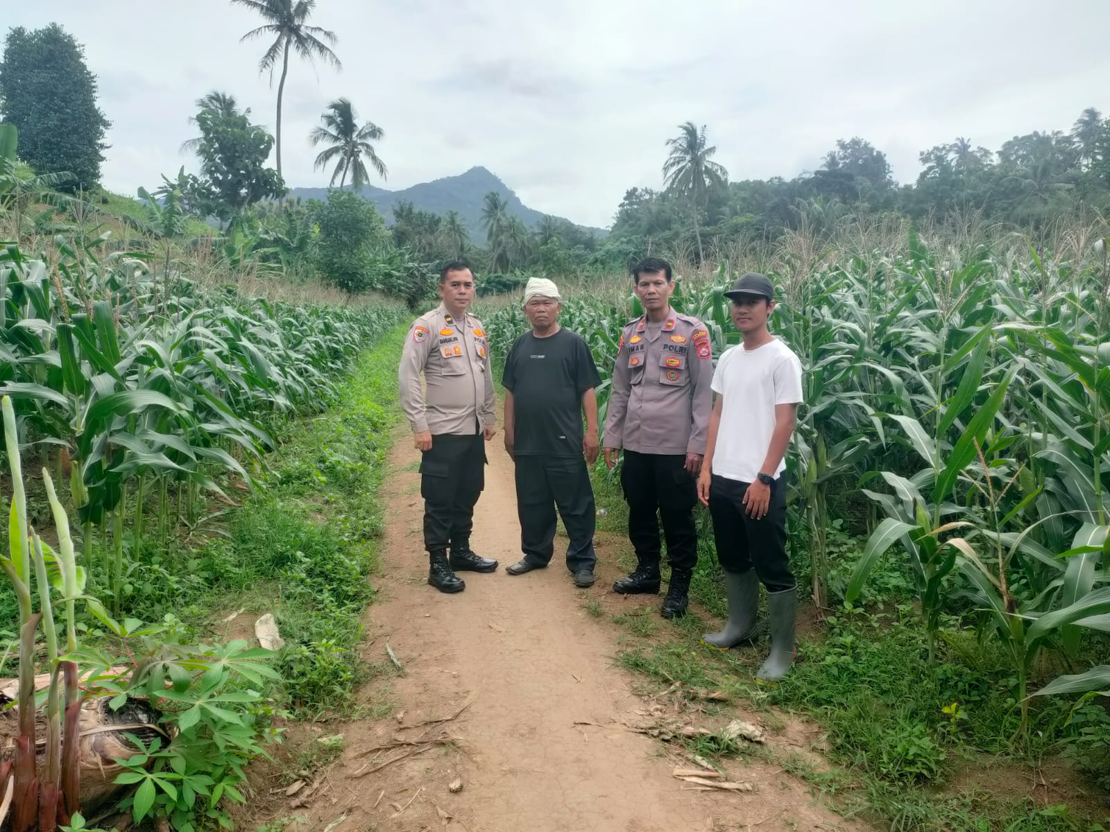 Polsek Anyar Bersama Ketua Poktan Laksanakan Cek Tanaman Jagung