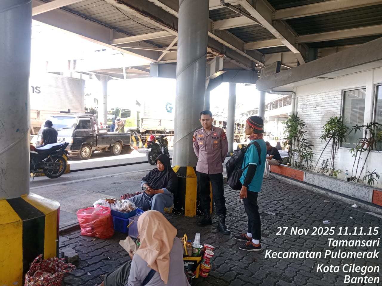 Cilegon - Personel Polsek Kskp Merak Polres Cilegon Polda Banten melaksanakan sambang dan patroli kawasan pelabuhan merak dalam rangka menjaga Harkamtibmas di Kawasan Pelabuhan Merak, Kamis (27/11/2025).