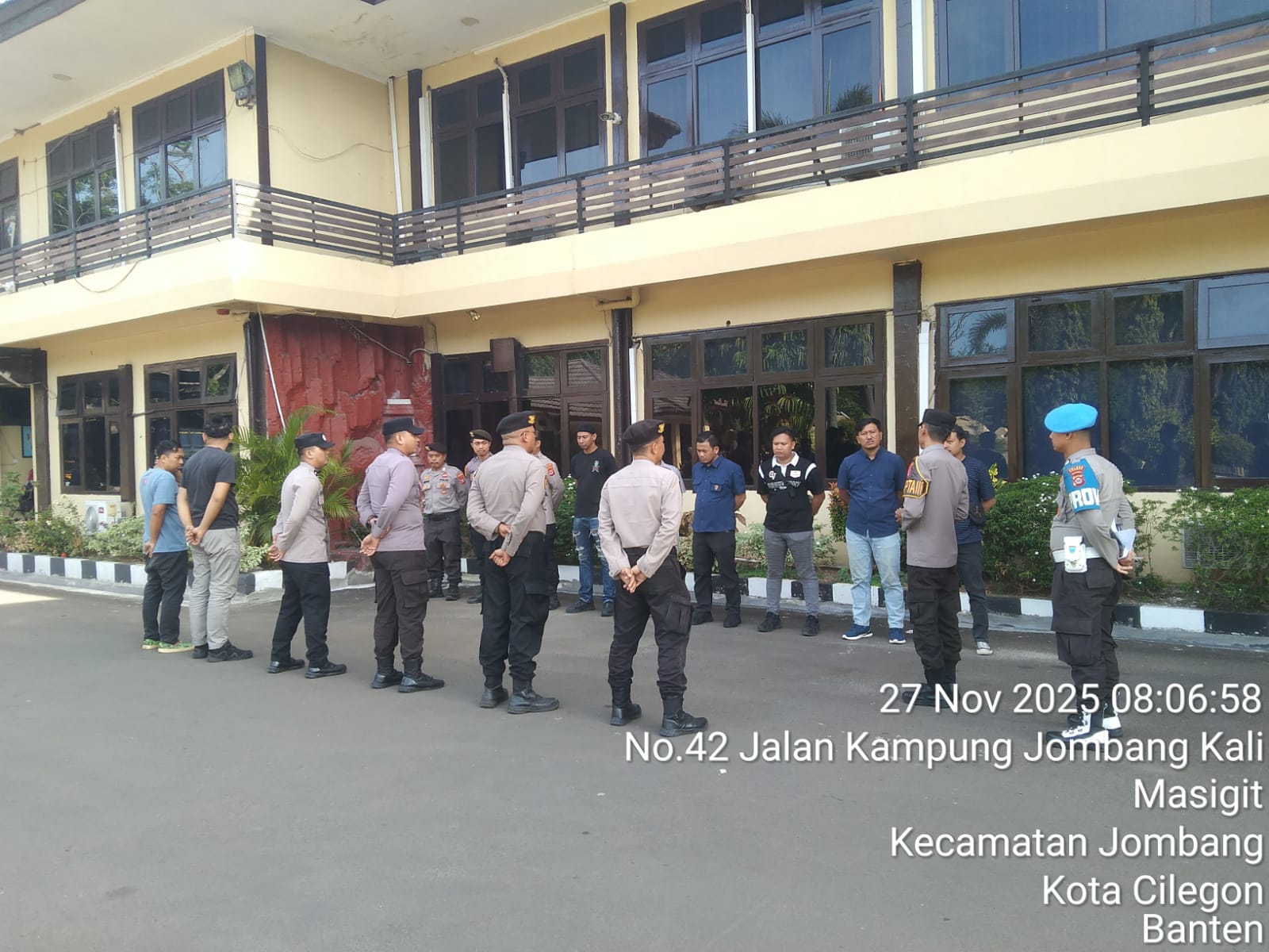 Cilegon, personel Satreskrim Polres Cilegon Polda Banten melaksanakan piket di penjagaan pintu masuk Polres Cilegon Polda Banten untuk memastikan mako Polres Cilegon dalam keadaan aman dan nyaman dalam melayani Masyarakat tanpa adanya gangguan kejahatan. Kamis (27/11/2025).