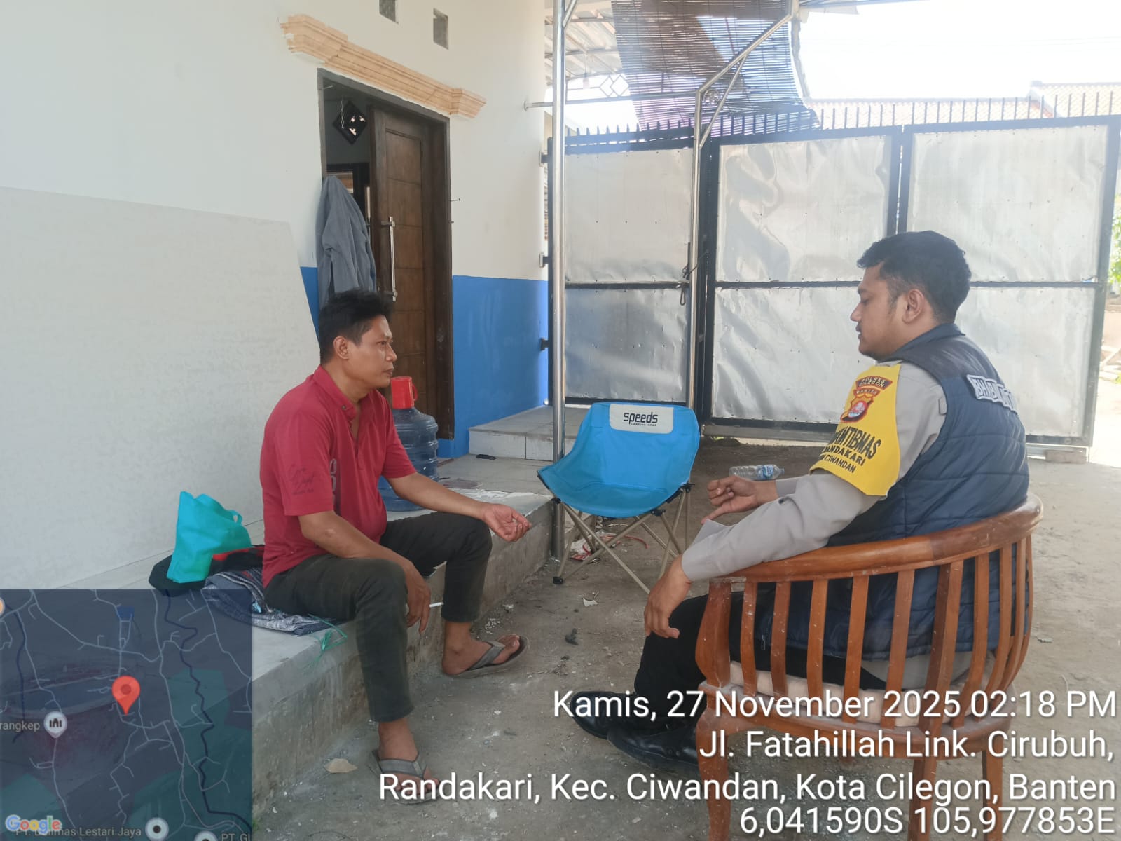 Cilegon - Konsisten dalam menjalin silaturahmi dan membangun komunikasi yang baik dengan Masyarakat binaannya masing – masing ,Bhabinkamtibmas Polsek Ciwandan Polres Cilegon Polda Banten Melaksanakan Sowan dan Sambang Dialogis menciptakan kamtibmas yang kondusif di daerah binaannya, Kamis (27/11/2025).