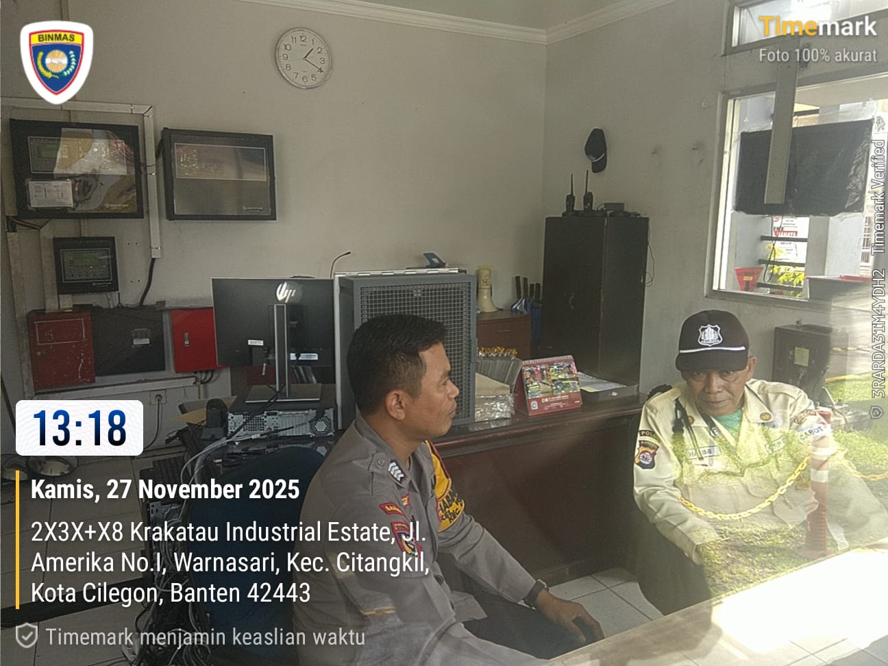 Cilegon - Bhabinkamtibmas Polsek Ciwandan Polres Cilegon Polda Banten Bangun Kemitraan Kamtibmas Dan Datangi Petugas security Meminta Agar Dapat Membantu Tugas-tugas Polri Dalam Menjaga Harkamtibmas,Kamis (27/11/2025).