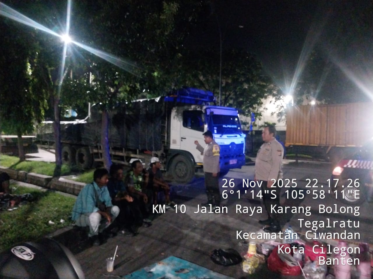 Cilegon - Personil Polsek Ciwandan Polres Cilegon Polda Banten Dalam Pelaksanaan Kegiatan Patroli dengan menyalakan lampu rotator berwarna biru di Daerah Hukum Polsek Ciwandan Polres Cilegon Polda Banten dari malam hingga dini hari, dalam rangka menciptakan situasi aman dan kondusif, Kamis (27/11/2025).