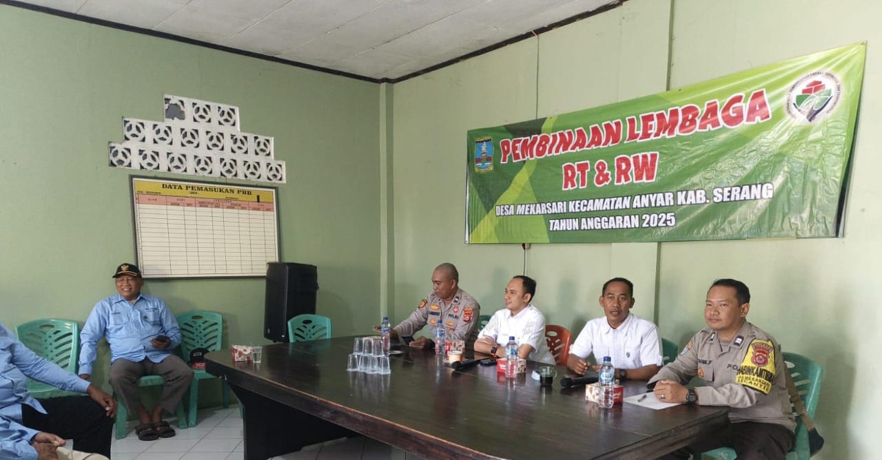 Kapolres Cilegon Polda Banten AKBP Dr. Martua Raja Taripar Laut Silitonga melalui Kapolsek Anyar IPTU Iwan Sofiyan Kegiatan pembinaan tersebut bertujuan untuk meningkatkan kapasitas, koordinasi, dan fungsi pelayanan para pengurus RT dan RW dalam mendukung pembangunan serta menciptakan lingkungan masyarakat yang tertib, aman, dan harmonis.