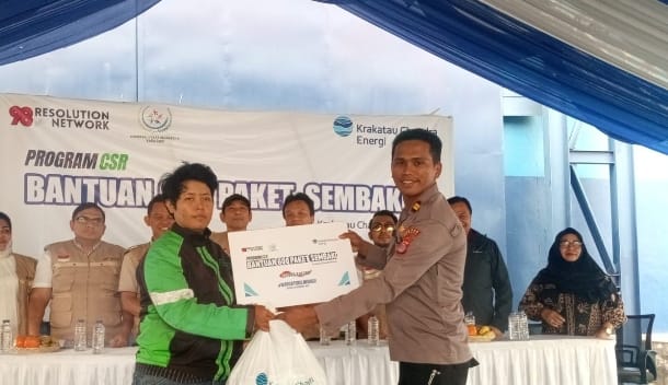 -POLRES CILEGON–Polda Banten  Kepala Polsek Purwakarta, IPTU Sukanda, turut hadir dalam kegiatan pembagian bansos sembako kepada perwakilan MRC CB Maksim Respon Korps Cilegon Bersatu dan Persatuan Driver Ojol Cilegon. Kegiatan yang diselenggarakan di PT Krakatau Candra Energi (KCE) Jalan Kembar, Kelurahan Kebondalem, Kecamatan Purwakarta, Kota Cilegon, menyebarkan sebanyak 300 paket sembako.Sabtu.(29-11-2025)