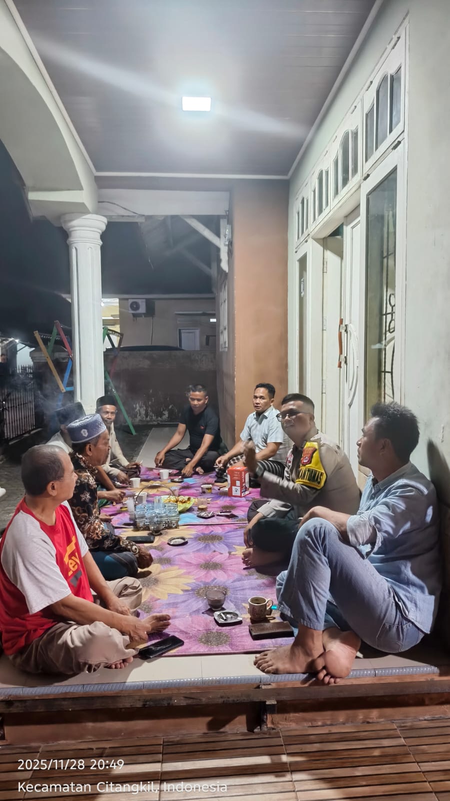 Cilegon - Bhabinkamtibmas Polsek Ciwandan Polres Cilegon Polda Banten menghadiri kegiatan Doa Bersama dan Dilanjutkan Pengajian Rutin dilingkungan Kelurahan Samangraya Kecamatan Citqngkil Kota Cilegon, Sabtu (29/11/2025).